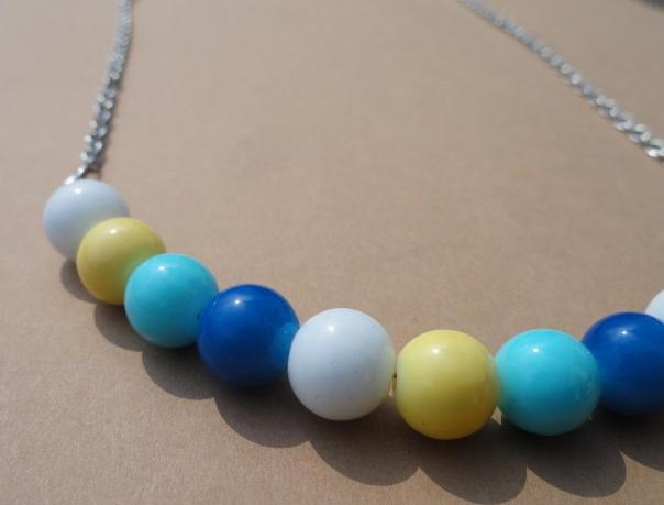 Náhrdelník z řetízku z chirurgické oceli, nerezového drátku a skleněných barevných korálků stejné velikosti. Řetízek lze snadno odepnout a použít ke všem mým přívěskům. Délku upravím na přání.