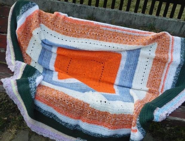 Všechny pletařky to moc dobře znají, tu zůstane kousek, tam zůstane klubíčko a tak se nahromadí nějaké ty větší i menší zbytky. Takto taky vznikla tato háčkovaná deka z rukou mojí maminky. Můžete se do ní zamuchlat a určitě vám bude příjemně teploučko. Můžete položit na trávník a jen tak lenošit. Blíží se jaro a deka se určitě hodí :)