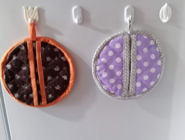 Praktická chňapka do kuchyně ve tvaru kruhu v kombinaci různých vzorů látek dle fotek. Je vícevrstvá s vnitřní vložkou, má termoizolační vlastnosti. Je prošitá. Velikost je průměr 21cm. Doporučuji prát na 40°C.