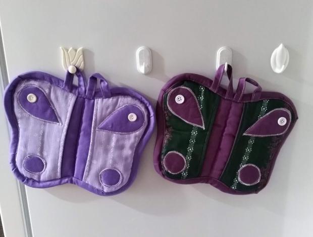 Praktická chňapka do kuchyně ve tvaru motýla v kombinaci různých vzorů látek dle fotek. Je vícevrstvá s vnitřní vložkou, má termoizolační vlastnosti. Velikost je cca 26cm x 21cm. Doporučuji prát na 40°C.