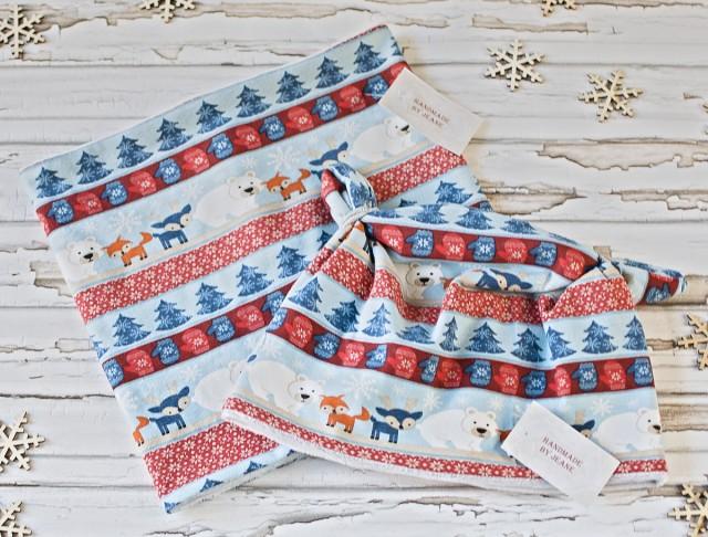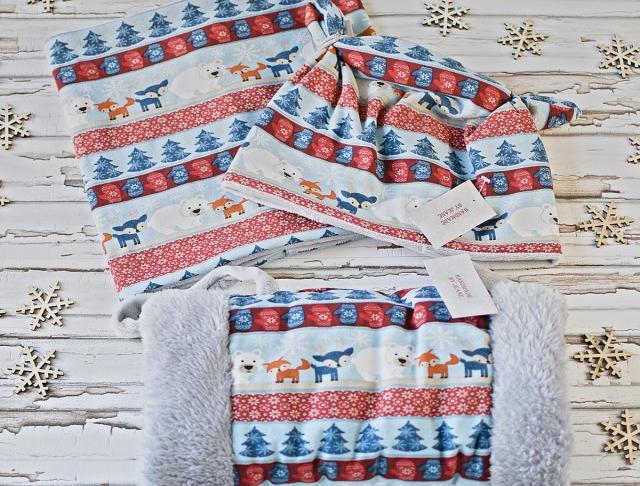 ušito z úpletu se zvířátky, stromečky a rukavičkami v pruzích - 95% bavlna 5% elastan gramáž 200g/m2