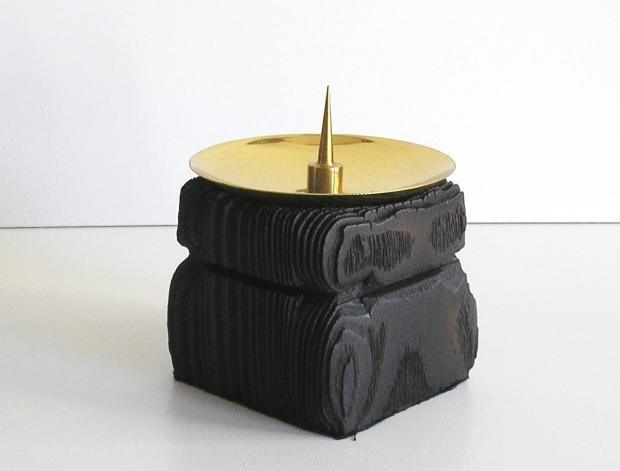 Svícen je vyrobený z měkkého dřeva, žíhaný v ohni a drásaný.