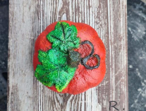 Oranžově malovaná dýně z bílého betonu, který je pevnější a kvalitnější než klasický šedý. Dýně je dvakrát ošetřená, penetrací a lakem.