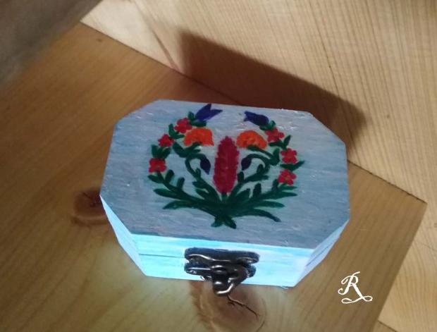 Miniaturní ručně malovaná dárková truhlička, ze dřeva se zavíráním. Vhodná jako dárková šperkovnice na náušnice, prstýnek...