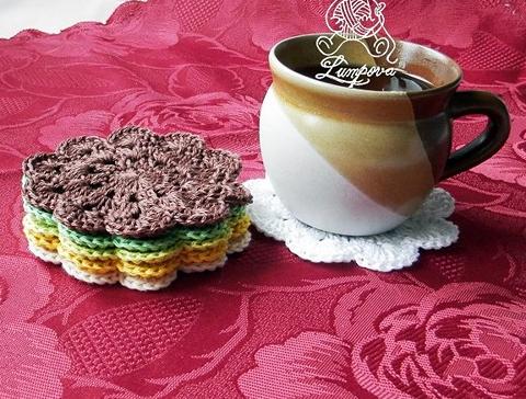 Ručně háčkovaná podložka pod hrnek. Malý dáreček, který potěší. Háčkované podložky pod hrnečky, vázičky a sošky. Podkafíčko je ze 100% bavlněné příze.