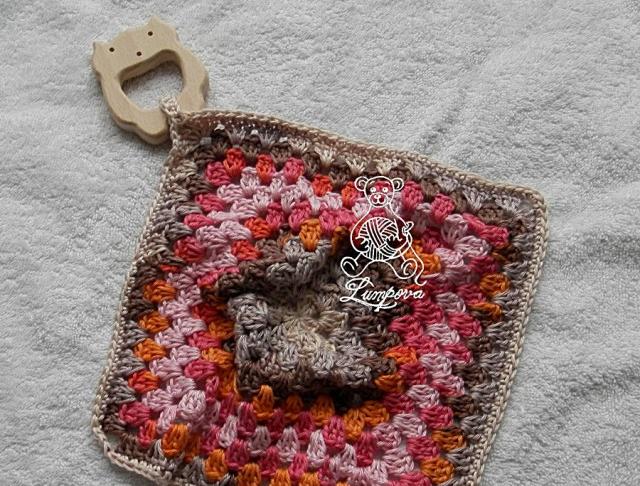 Je uháčkovaný z příjemné 100% bavlny - kousátko přírodní dřevo - bez chemických úprav.