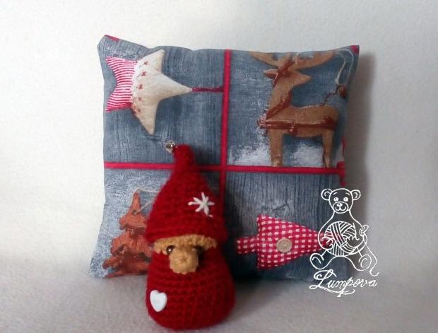 Skřítek je háčkovaný akrylu, dutým vláknem vyplněný, detaily jsou ručně vyšité, funční rolnička