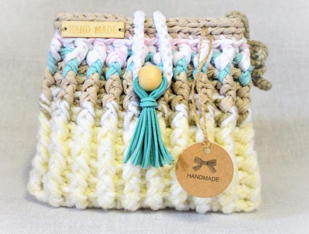Je vyrobena z bavlněných a akrylových přízí a špagátů