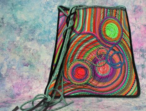 Zadní strana šedé plátýnko, přední strana výšivka z bavlněných přízí, šňůry na rameno se dají splést do copánků, nebo jen tak volně, jsou dlouhé 150 cm a lze je libovně upravit k potřebné délce .