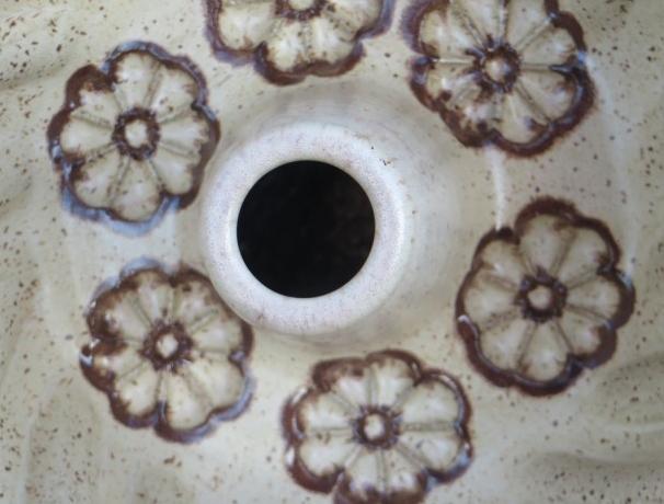 Na dně formy jsou vytlačeny reliefy kytiček, které jsou po upečení krásně viditelné.