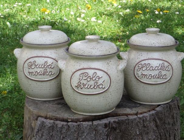 Dózy mají velikost přesně na kilo mouky. Výška nádoby s víkem je cca 17 cm.