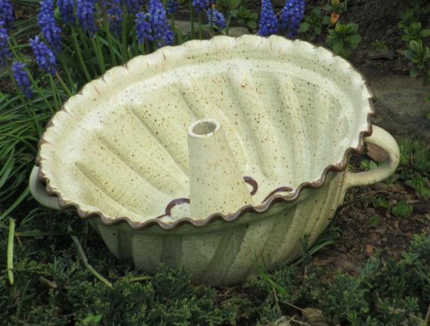 Krásná forma na bábovku, točená na kruhu, vyrobena z německé kameniny. Ve dně formy jsou srdíčka, která po upečení krásně uvidíte, jsou plastická.