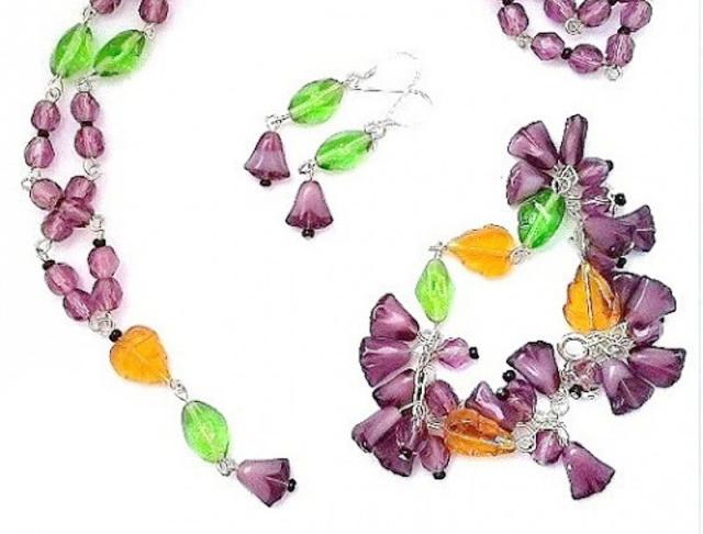 lístečky a zelené oválky, doplněné rokajlem a z puncovaných materiálů