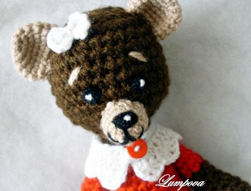 Vlastní návod na háčkovanou medvědí slečnu, který je podrobně rozepsaný, doplňěný fotografiemi. Posílám e-mailem v PDF formátu.