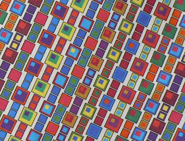 barevnost: pestrobarevné kostičky na šedavě bílém základě
