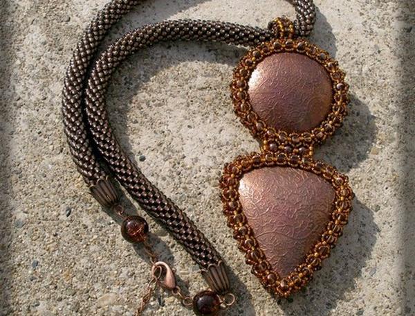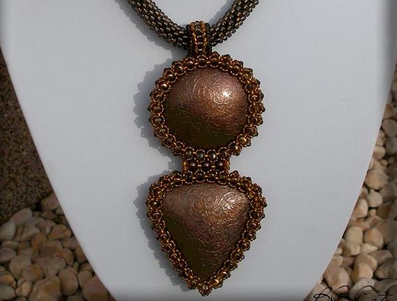 dva fimošony, obšité kvalitním rokajlem Toho a Preciosa, doplněné o korálky Rulla