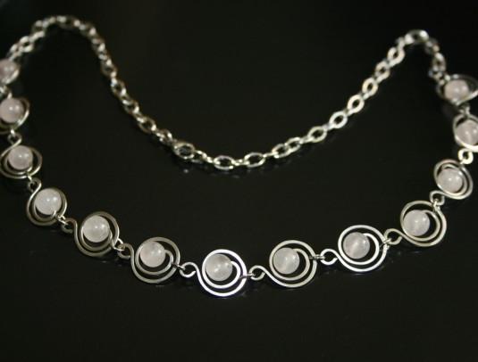 Náhrdelník je vyroben z chirurgické oceli 316L, ozdobený krásnými kamínky růženínu.