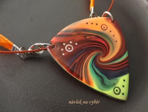 Elegantní přívěsek z polymeru na obruči červené barvy nebo oranžové stužce se šňůrkami - návlek na výběr