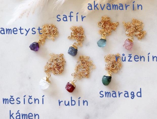 Jemné řetízky plněné zlatem (gold filled) s nádhernými surovými polodrahokamy. Můžete je nosit samostatně nebo kombinovat.
