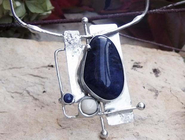 Leštěno, patinováno, ošetřeno antioxidantem. Zavěšeno na nerezovém řetízku, obvod je 48 cm. Zakončeno karabinkou a prodlužovacím řetízkem.