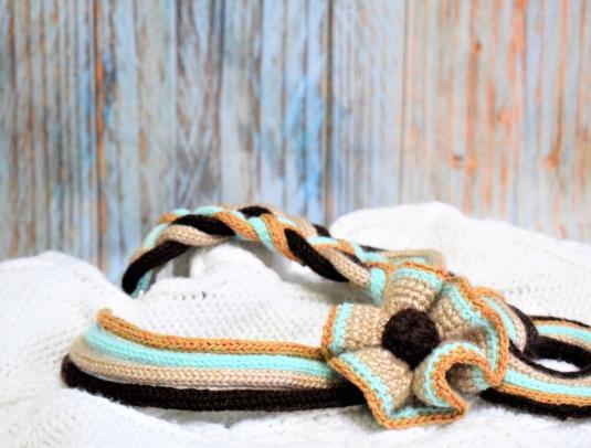 Náhrdelník vyrobený z akrylových přízí , ručně umotán do špagátů, zdoben háčkovanou květinkou, na zapínání