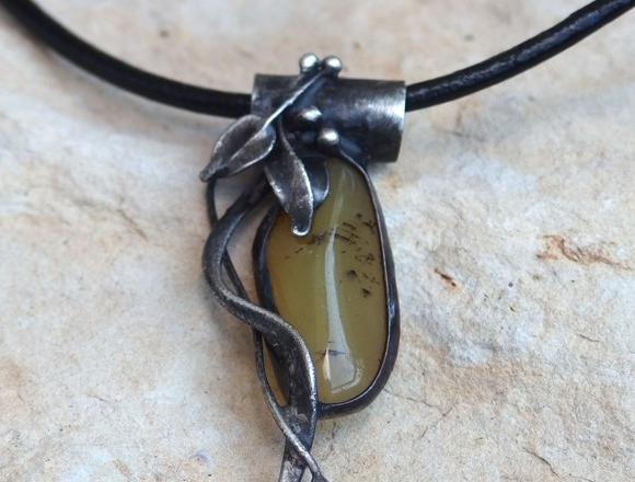 Cínovaný přívěsek se žlutým opálem