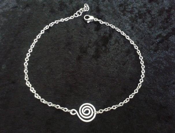 Nákotník - řetízek na nohu - je vyroben z chirurgické oceli 316L, ozdobený tepaným motivem spirály.