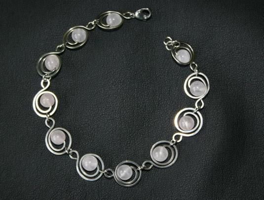 Náramek je vyroben z chirurgické oceli 316L, ozdobený krásnými kamínky růženínu.