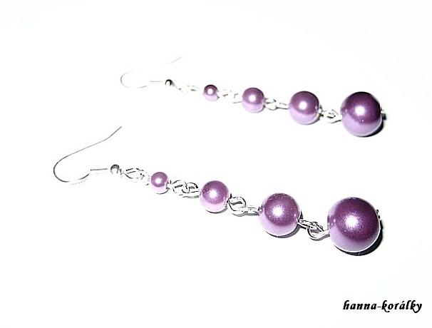 Dlouhé náušnice z 4 různých velikostí kuliček - od nejmenší po největší - středně fialové voskovky, délka včetně háčku 6,8cm, můžu Vám udělat delší nebo kratší, jak budete chtít.