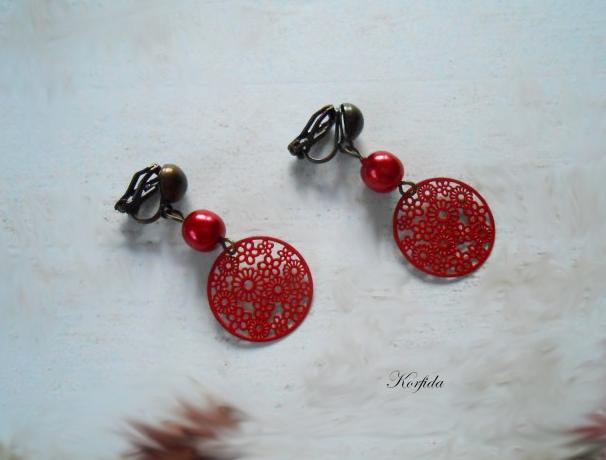 Náušnice klipsy červené kytičky