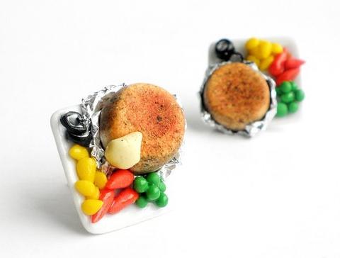 Talíř s kořeněným pečeným hermelínem zabalený v alobalu, doplněný o velkou porci zeleniny - hrášku, kukuřice, malé mrkvičky s černyma nakrájenýma olivama.. :)