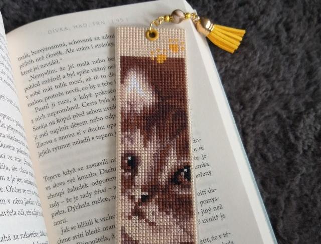 záložka je vyšívaná křížkovým stehem na plastové kanavě