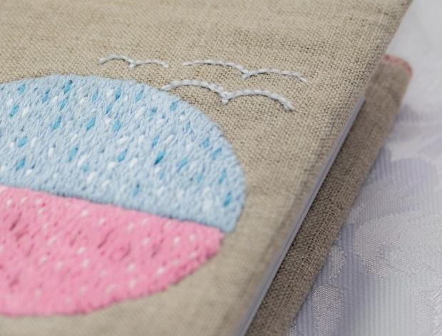 Ručně vyšívaný obal na knihu je určený na velikost knih A5 - na výšku do 22 cm. Celý rozložený měří 42,5 cm. Je nastavitelný na různou tloušťku knih.