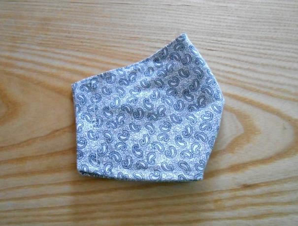 Dvouvrstvá rouška o šířce cca 24 cm a výšce cca 14 cm z látky bílé barvy s tmavě šedým vzorem složené ze 100% bavlny a s navlečenou tenkou kulatou gumičkou za uši jejíž délku si sami upravíte a lze ji vyměnit, protože se navlečena v tunýlku. Kulatá gumička dle aktuální nabídky.