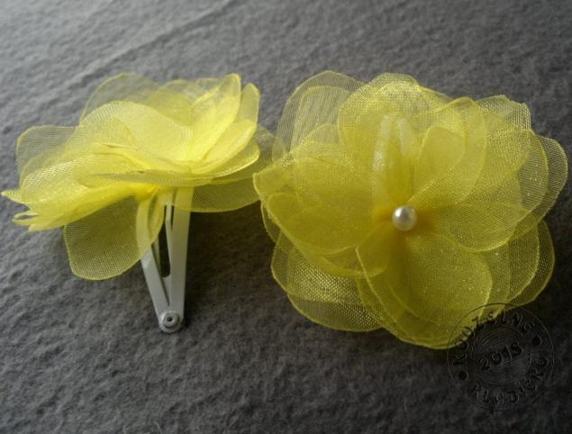 Sada - 2 sponky a 2 gumičky s kvítky v barvě žluté.