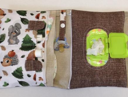 Pod kapsou s vlhčenými ubrousky je velká kapsa (rozměry 18 x 27 cm), do které se vejde přebalovací podložka.