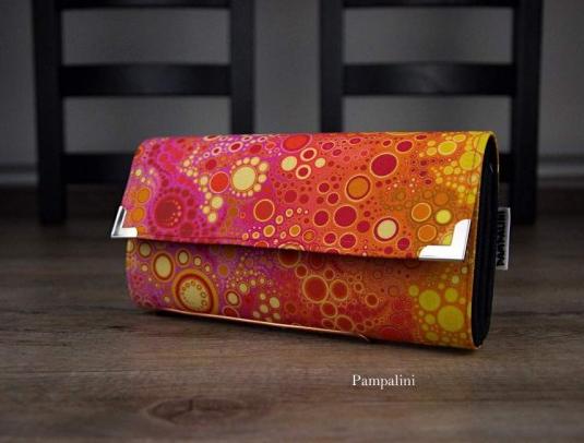 Velká peněženka ušitá z krásné zahraniční designové látky. Pevně vyztužená a opatřená kovovými rohy.
