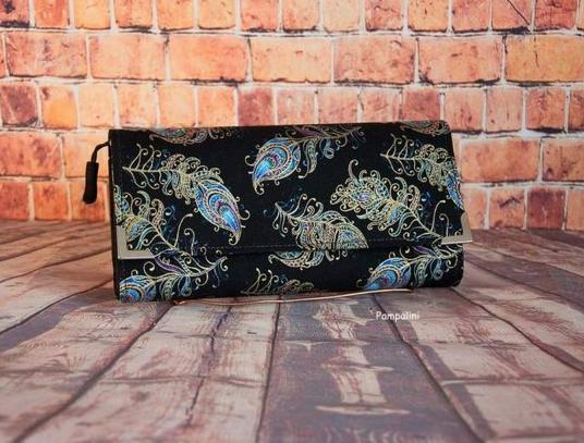 Velká peněženka ušitá z krásné zahraniční designové látky. Pevně vyztužená a opatřená kovovými rohy.