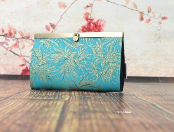 Peněženka z krásné designové látky, pevně vyztužená s kovovým zapínacím rámečkem.