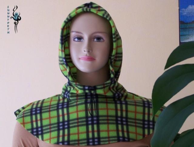 Nákrčník je ušit z příjemného, pružného a hřejivého flísu (kvalita I.třídy s gramáží: 195 g/m2). Kapuca se dá stáhnout pomocí tkaničky a brzdičky. Nákrčník můžete nosit buď jako krátké pončo přes oděvy nebo ho můžete schovat pod tričko a pod bundu a v obojím případě Vás příjemně zahřeje a na rozdíl od šály Vám nebude zima na krk, hlavu a uši.