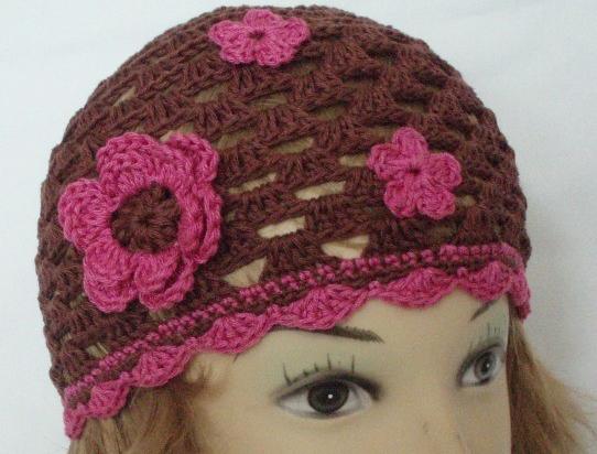 Háčkovaná čepička ze 100% bavlny se hodí na jaro,léto i podzim.
