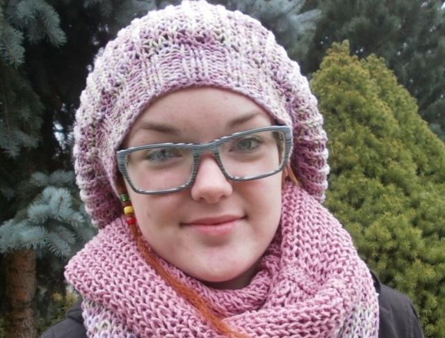 pletená čepice se šálou. Pleteno z bavlněné příze "Kateřina".