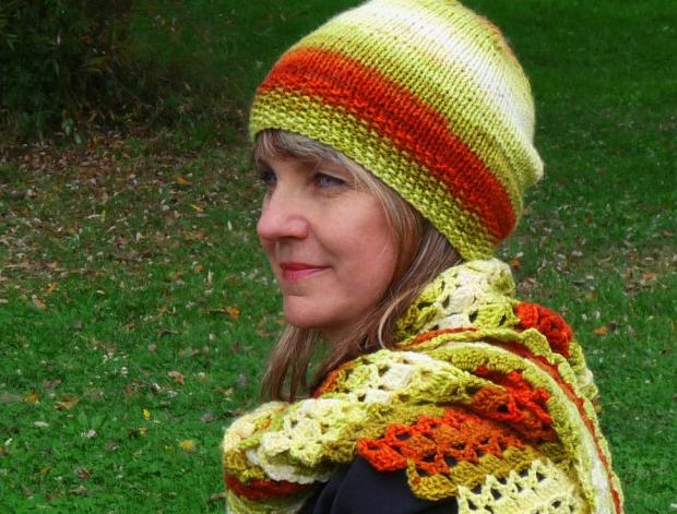Do setu možno doplnit podzimním šátkem ze stejné příze z mé nabídky