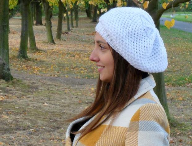 Pletený baret - sněhobílý