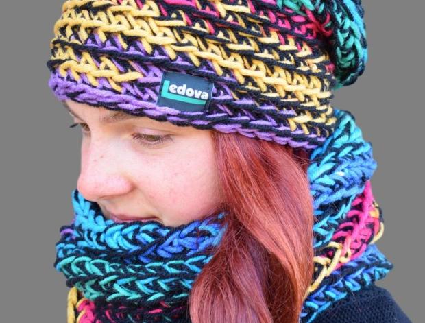 HÁČKOVANÁ SOUPRAVA ČEPICE A NÁKRČNÍKU ZE SILNÉ AKRYLOVÉ PŘÍZE
