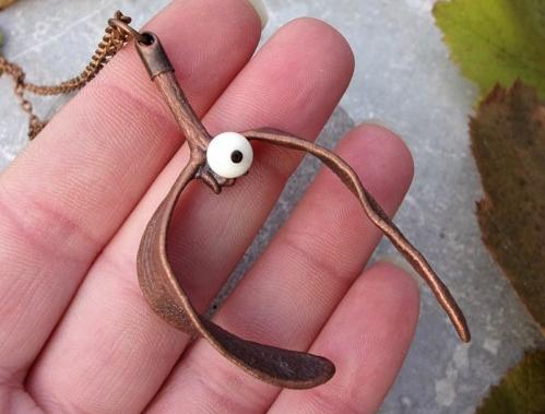 Šperk zhotovený kouzelnou metodou electroforming, mědí potažené skutečné přírodniny. Patinováno a ošetřeno speciálním antioxidačním prostředkem.
