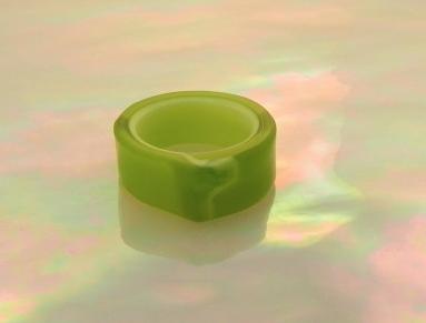 skleněný prsten vytvořený technikou vinutí skla zelený žíhaný PP 255 50 tvar - válcový 15,9 mm, velikost 50, šířka 9 mm