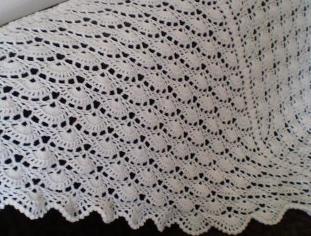 Velký bílý krajkový háčkovaný šátek