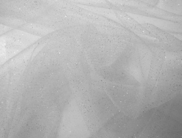Dlouhý, bohatý, bílý závoj se třpytky.