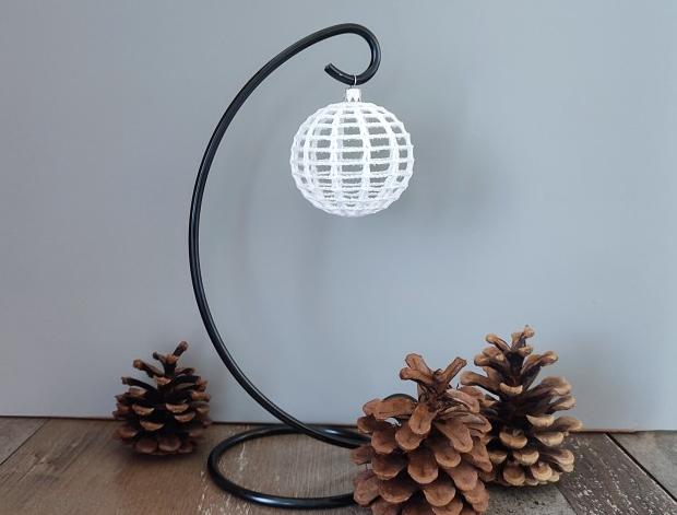 Háčkované vánoční baňky jsou sněhově bílé barvy, háčkované ze 100% bavlny značky Sněhurka.